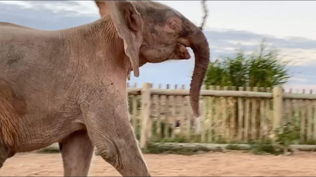 Head up, ears out, tail out and trunk a'bouncing as Khanyisa takes her morning dash to her new family, the Jabulani Herd.