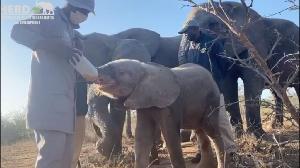 Khanyisa's first milk bottle in the wild!