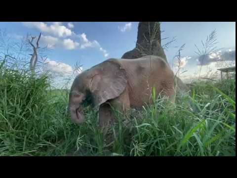 Khanyisa is in her element when surrounded by green grass and lush vegetation! She can wander for hours just trundling along, both eating and playing with the green grasses.