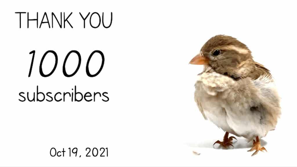 We have just reached 1000 subs on YouTube. That's a lot for such a small bird.
